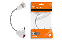 Переходник вилка Е27 300мм белый с выключателем TDM